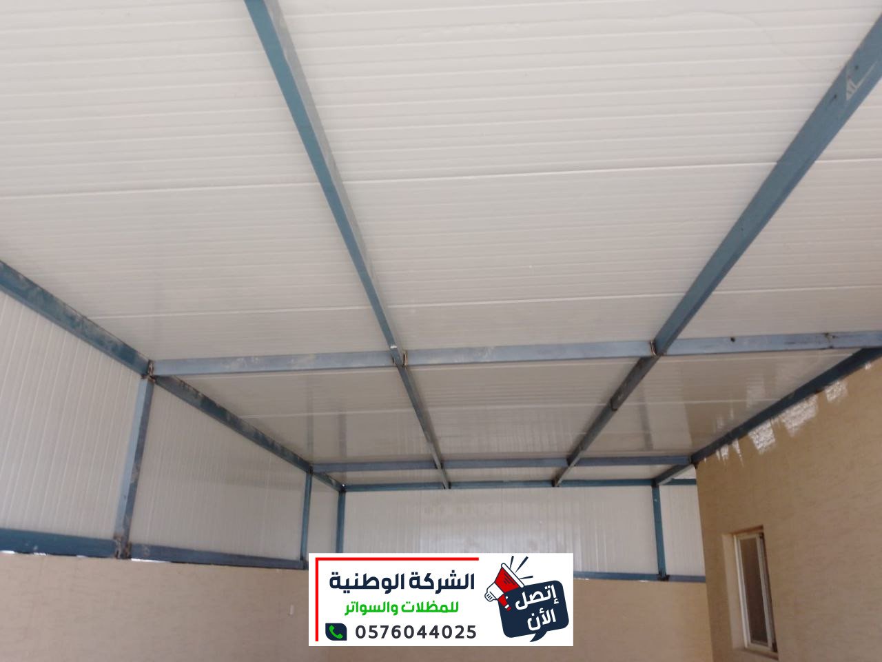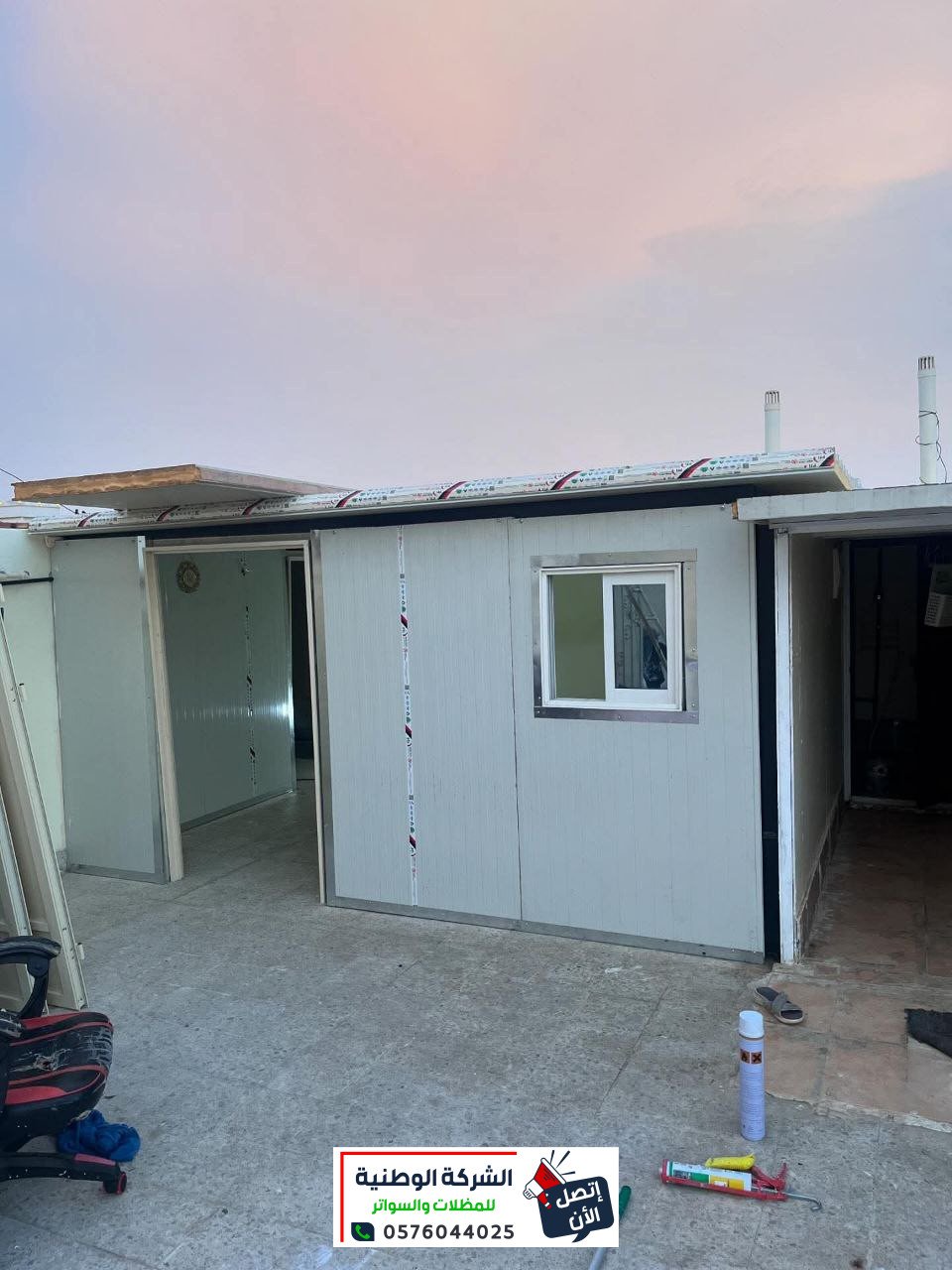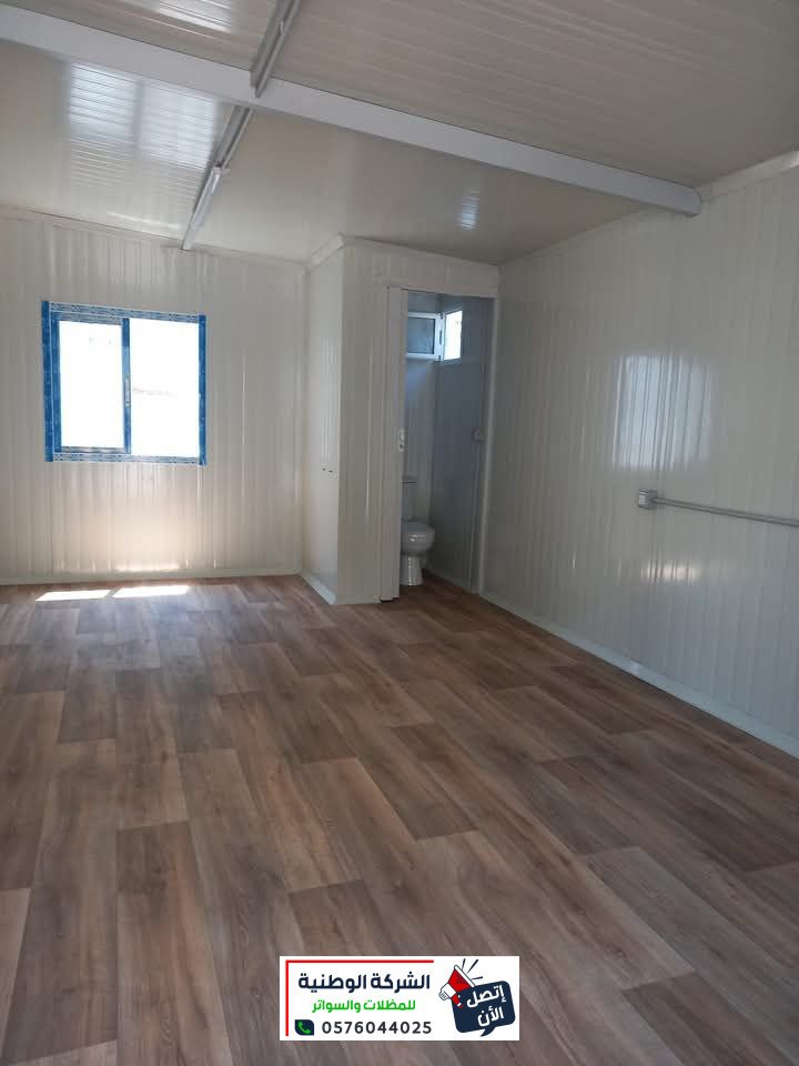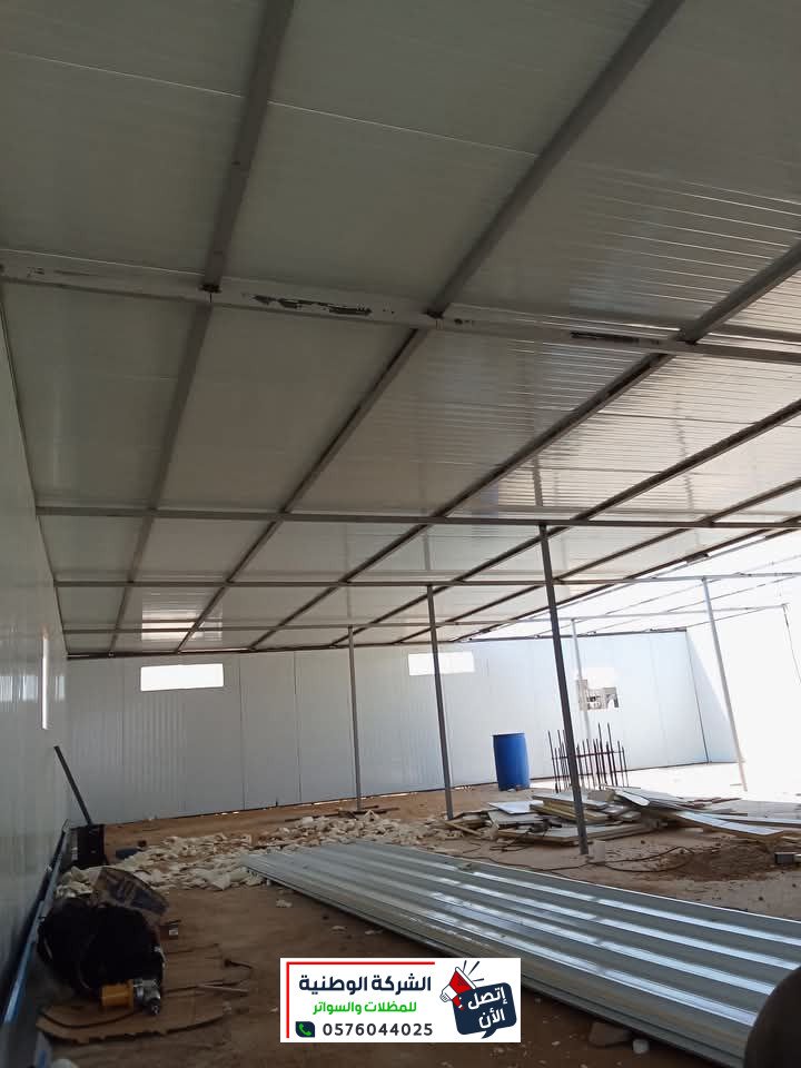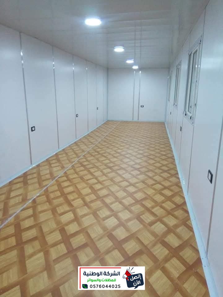 - تركيب سقف الغرف من ألواح الساندويتش البانل المظلع حسب السماكات المطلوبة والمتفق عليها، بحيث يتم تثبيتها مع الجوانب، وعمل الديكور الأمامي، مع عمل إضاءة لد مخفي.